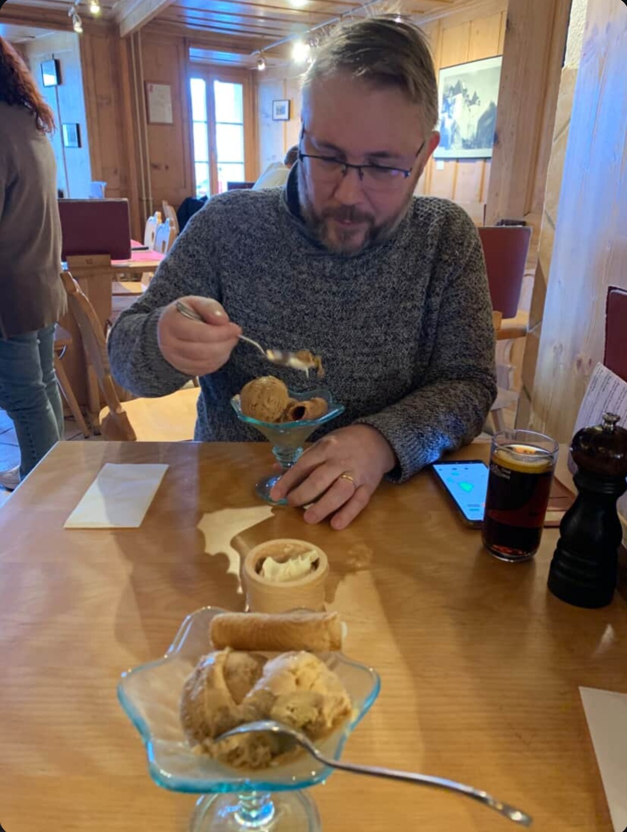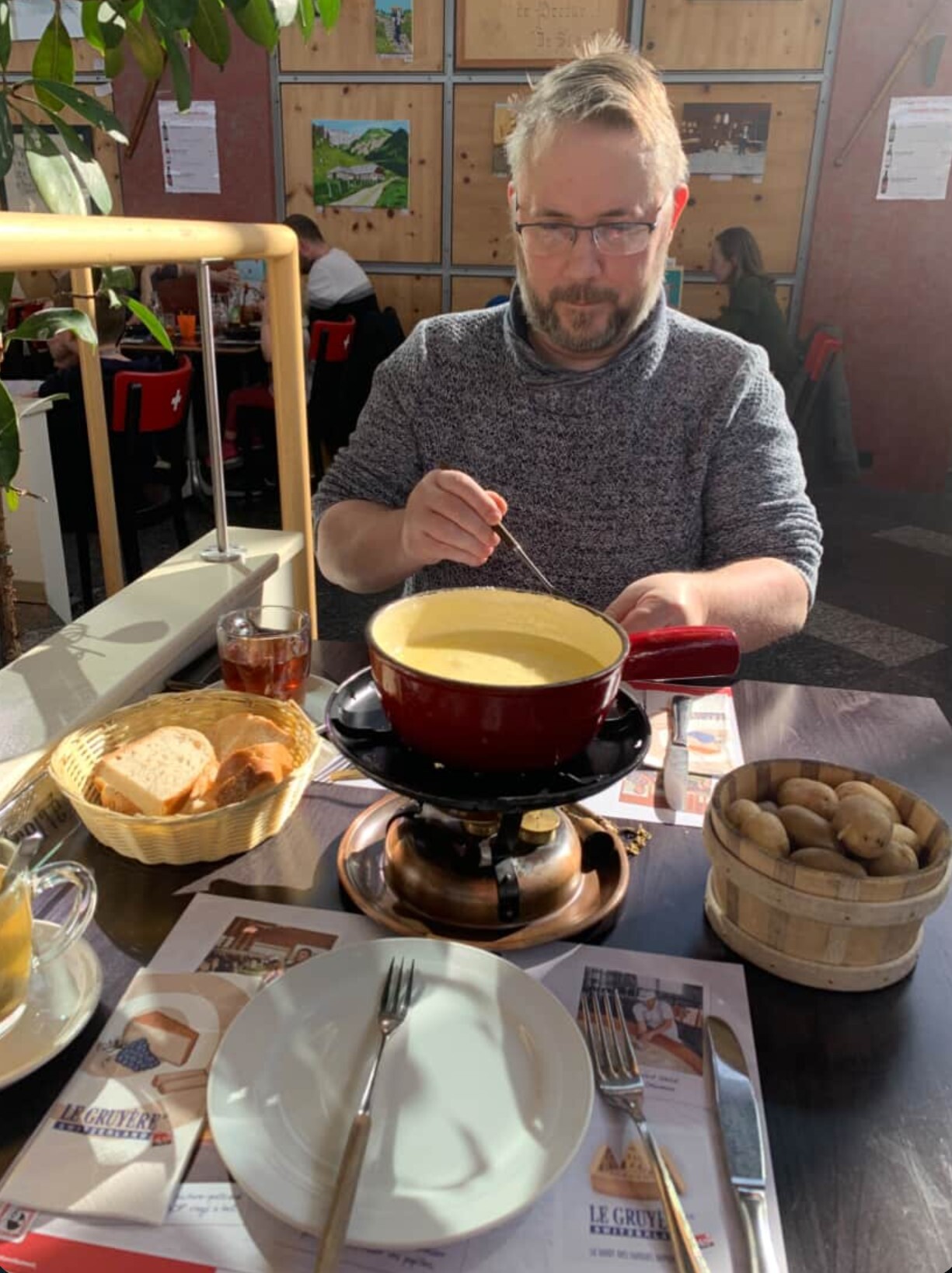Petite balade au château de Gruyère avec restaurant pour une bonne fondue et d'une bonne glace avec crème double de Gruyère.