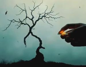 Le cœur détourné → symbolise l'infidélité et la dépendance aux choses éphémères.