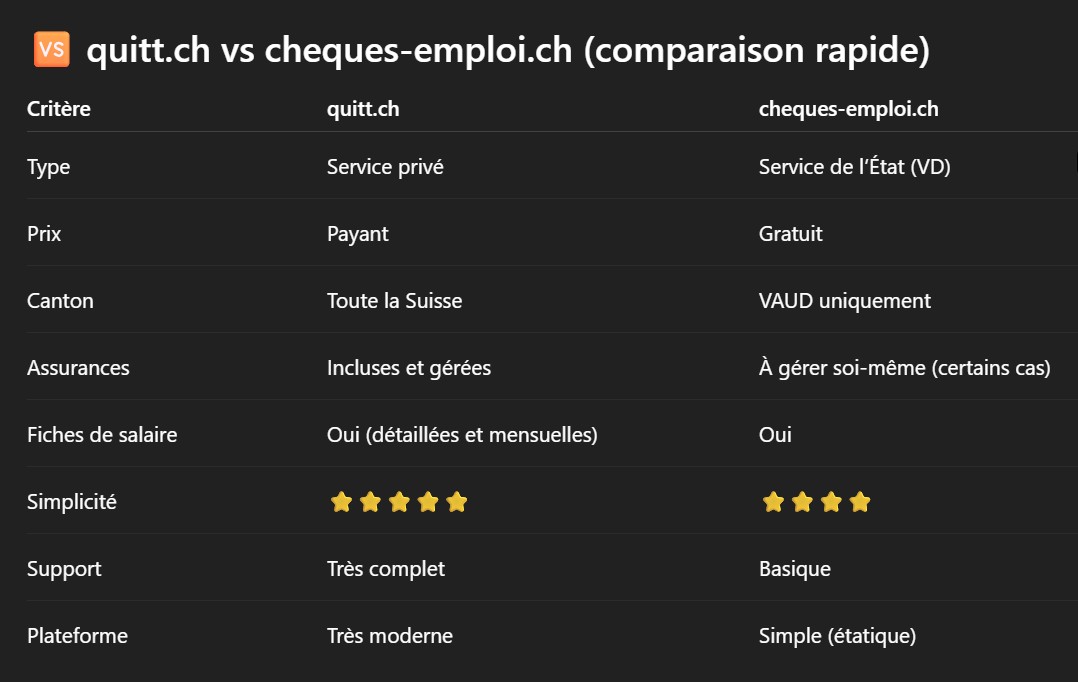👉 Pour commencer : chèque-emploi.ch (gratuit, parfait, officiel Vaud)
